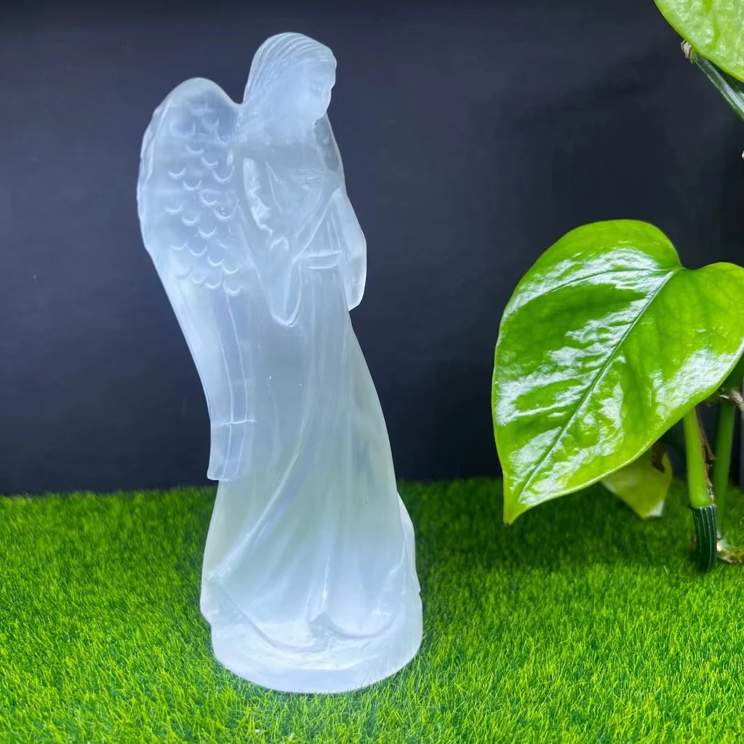 12cm Guardian Angel Figurine Natural White Selenite Raw Crystals Hand Carved Gypsum Crystal Healing Stone Home Decor DIY Gifts
