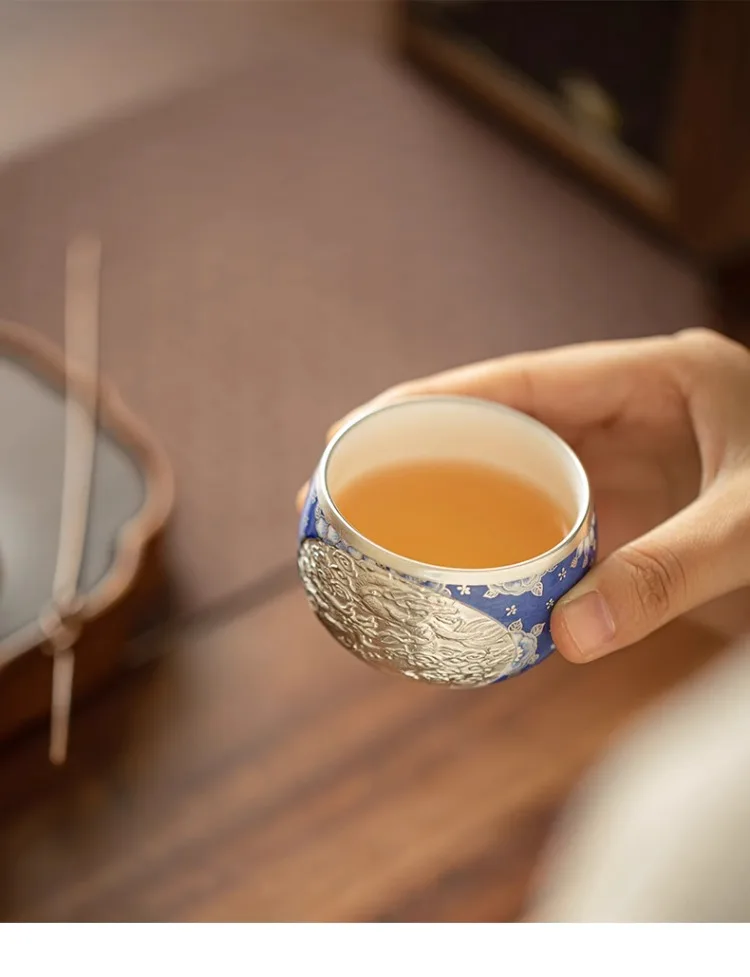The Royal Dragon and Phoenix Tea Pot Set is a stunning addition to any tea lover's collection. Crafted with gilded silver, this Xishi pot features intricate relief designs of the two auspicious creatures. The set includes one pot and two cups, perfect for traditional Kung Fu tea ceremonies. Bring a...