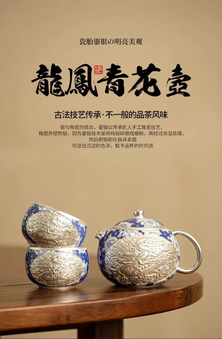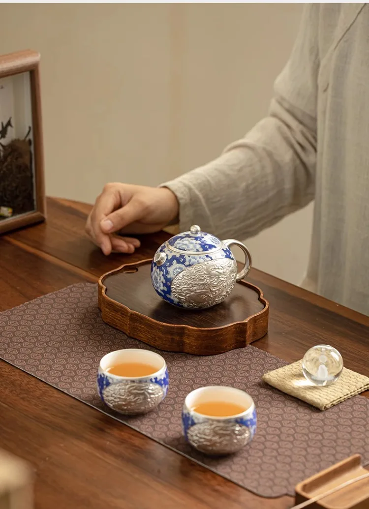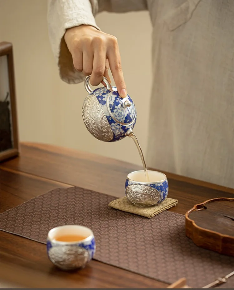 Royal Dragon and Phoenix Tea Pot Set (2 Cups + Tea Pot)