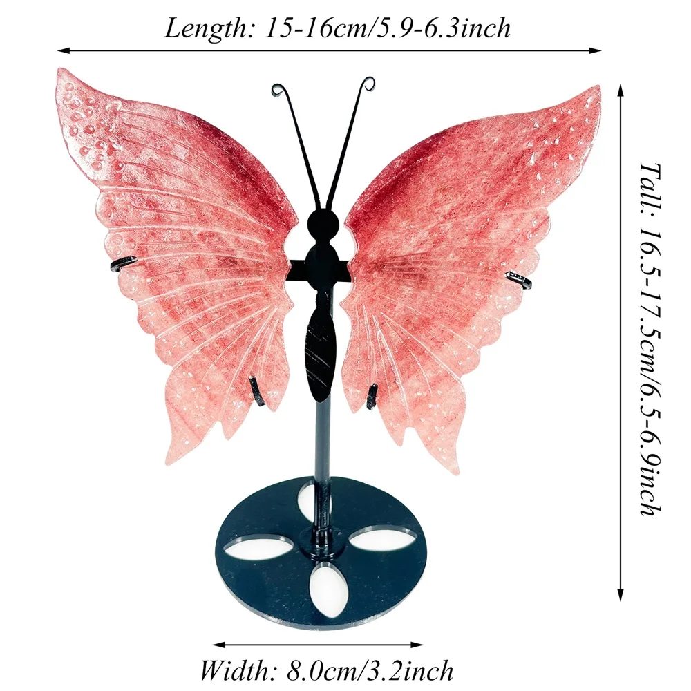 Add a touch of nature and beauty to your home or event with our Strawberry Quartz Butterfly Decor. Crafted from natural gemstones, the butterfly wings symbolize transformation, rebirth, and healing. Perfect as a wedding favor or meaningful souvenir. SPECIFICATIONS   Theme: Love Material: CRYSTAL Is Natural Material: YES Tips: ●As...
